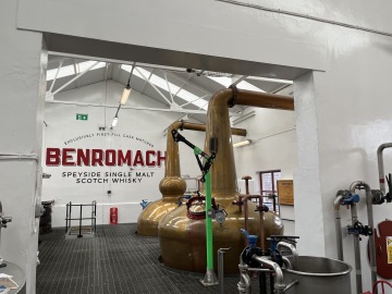 Our final stop of the day was Benromach Distillery, located just outside Forres. Like BenRiach, Benromach was also in silent season, but that didn’t take away from the tour’s charm. Benromach is known for its light peat profile, a throwback to the traditional Speyside style, and the tour offered great insights into how they’ve revived this once-closed distillery.