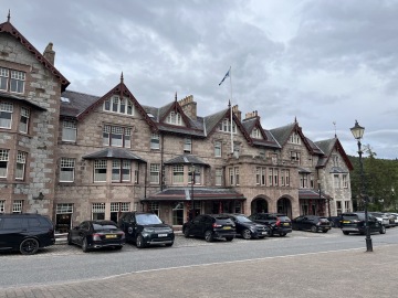 The evening took us to Braemar, a quaint town that surprised us with its bustling tourist activity. After dinner at Farquharsons, we headed to Bertie’s Whisky Bar at the Fife Arms Hotel. Tucked away in a cozy room adorned with whisky bottles, Bertie’s provided a unique and luxurious tasting experience.